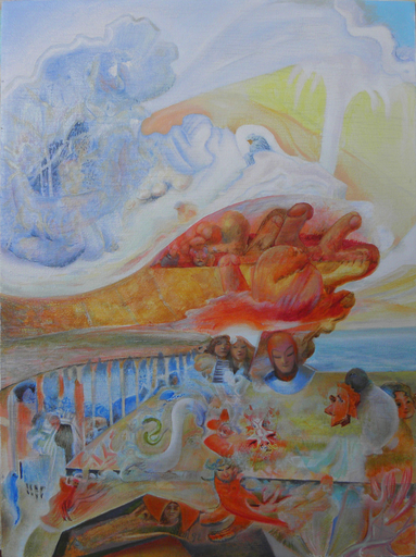 Vanwege het feit, dat zo veel van deze beelden aan elkaar gerelateerd zijn en gecombineerd moeten worden, voel ik me genoodzaakt sommigen enkel als suggestie of minder opvallend weer te geven, terwijl andere meer concreet worden uitgewerkt. Zo ontstaat er een balans van krachten en energieën, die ik herken vanuit mijn eigen ervaring als wezenlijk.