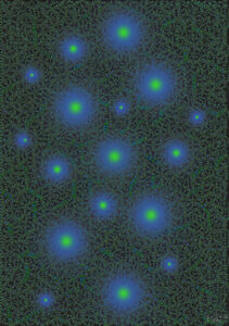 2014In een visioen verschenen deze lichten, zwevend boven een oppervlak. Ze symboliseren het ontstaan van de fysieke vorm. De titel heeft betrekking op de oorspronkelijke foto die als uigangspunt diende voor dit werk.